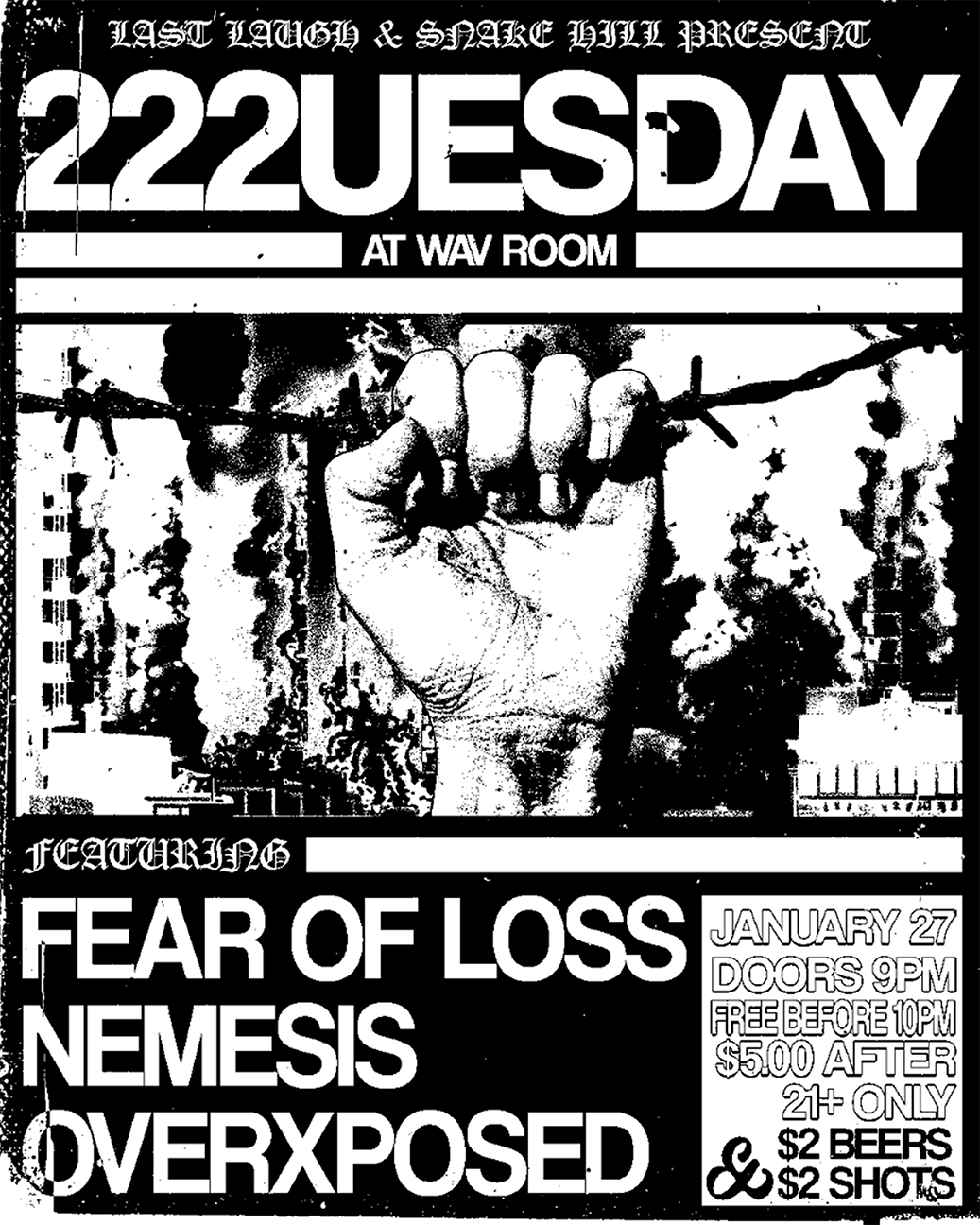 Flyer for 222uesday at Wav Room presented by Snake Hill